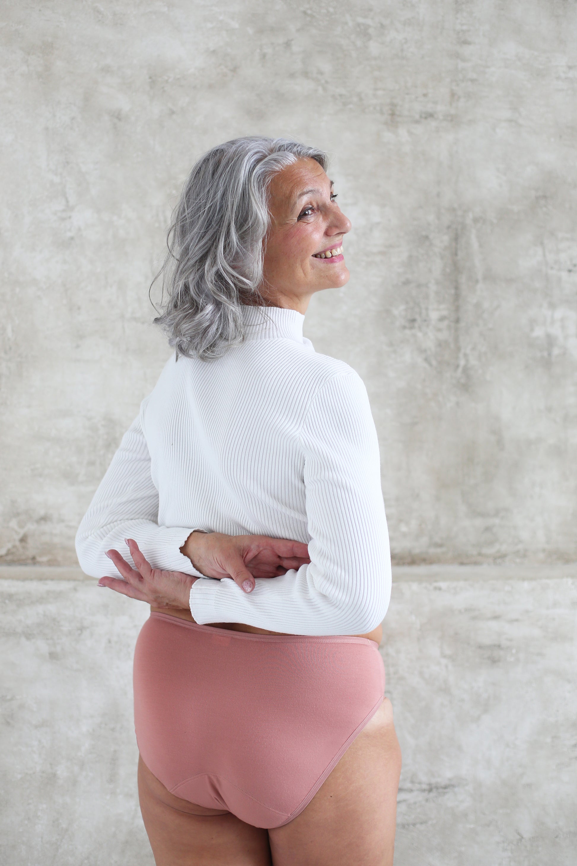 Nejoblíbenějšímu klasickému střihu menstruačních kalhotek v odstínu růžového latte neodoláte! Díky růžovo-béžové barvě jsou kalhotky pod oblečením skoro neviditelné.